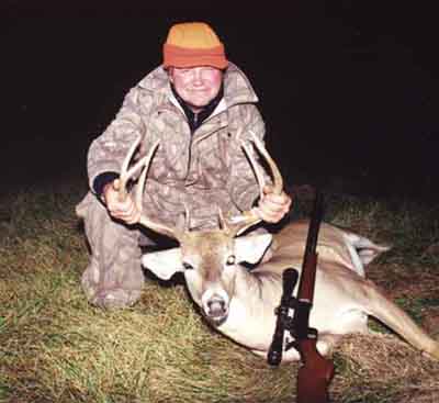 This buck was shot at 215 yards with a 1" high at 100 yard site